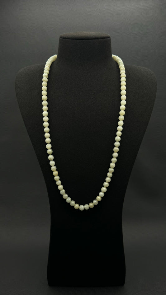 Round beads of natural jade placed elegantly into strands, an accessory that's sure to elevate any occasion.