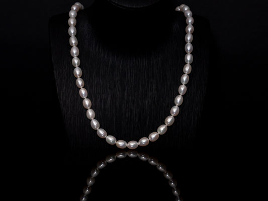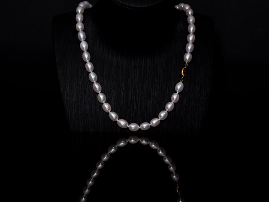 20" Oval Baroque White Pearl Necklace | AAAAA Grade | 18K (yellow-gold) Clasp [cn084]