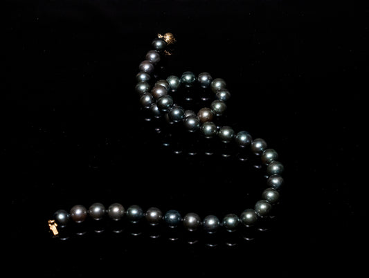 16" Tahitian Grey-Green Pearl Necklace | AAAA Grade | 14K Clasp [cnT030]