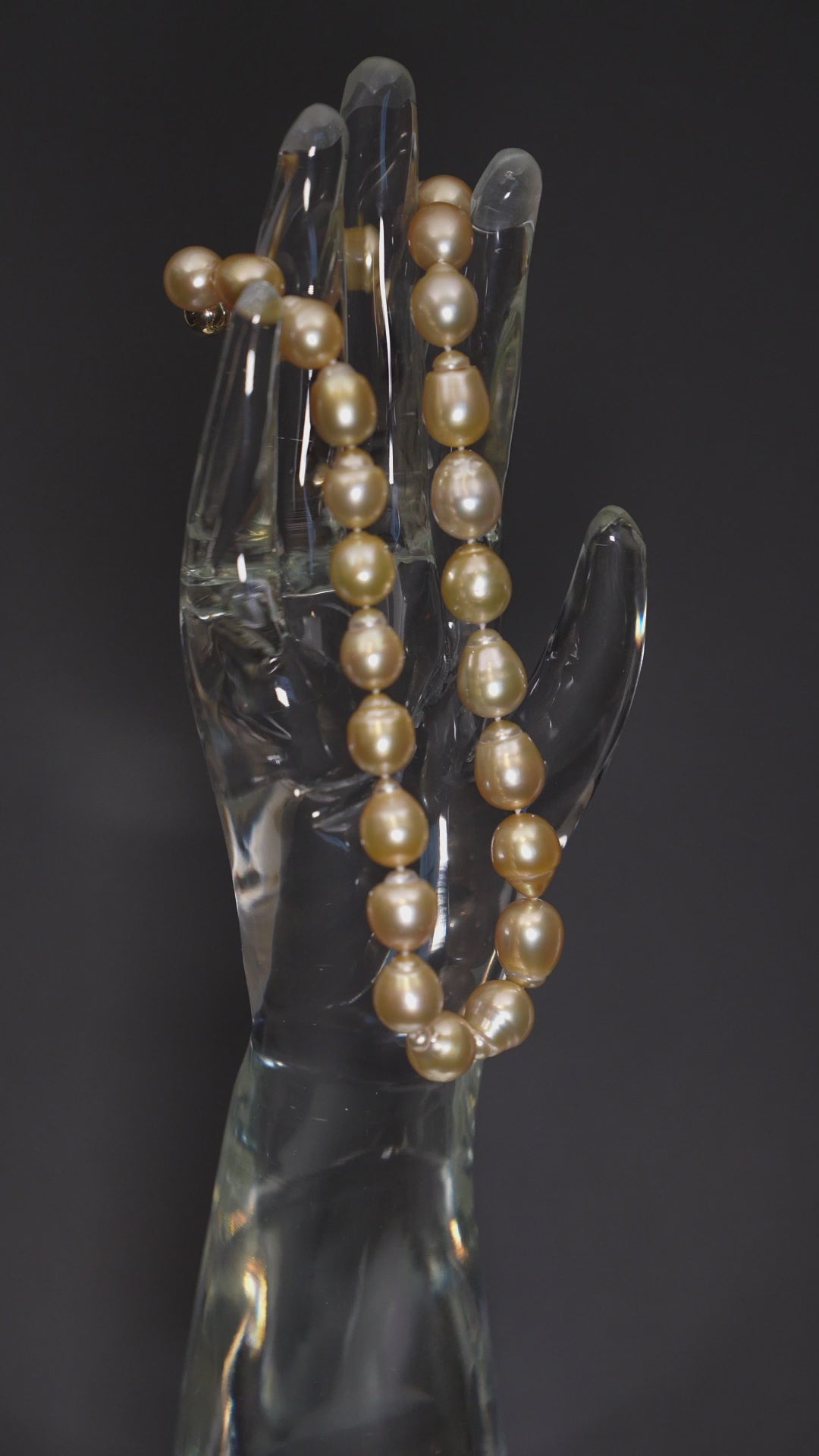 Elevate your elegance with our TOP-Luster grade South Sea Necklace made of golden baroque pearls. This exquisite piece of jewelry is a unique choice for any occasion. Featuring 11-12.9mm pearls, this stunning necklace embodies sophistication and natural beauty. The 16-inch continuous strand features an 18K clasp. It is easy to wear and versatile for any occasion.