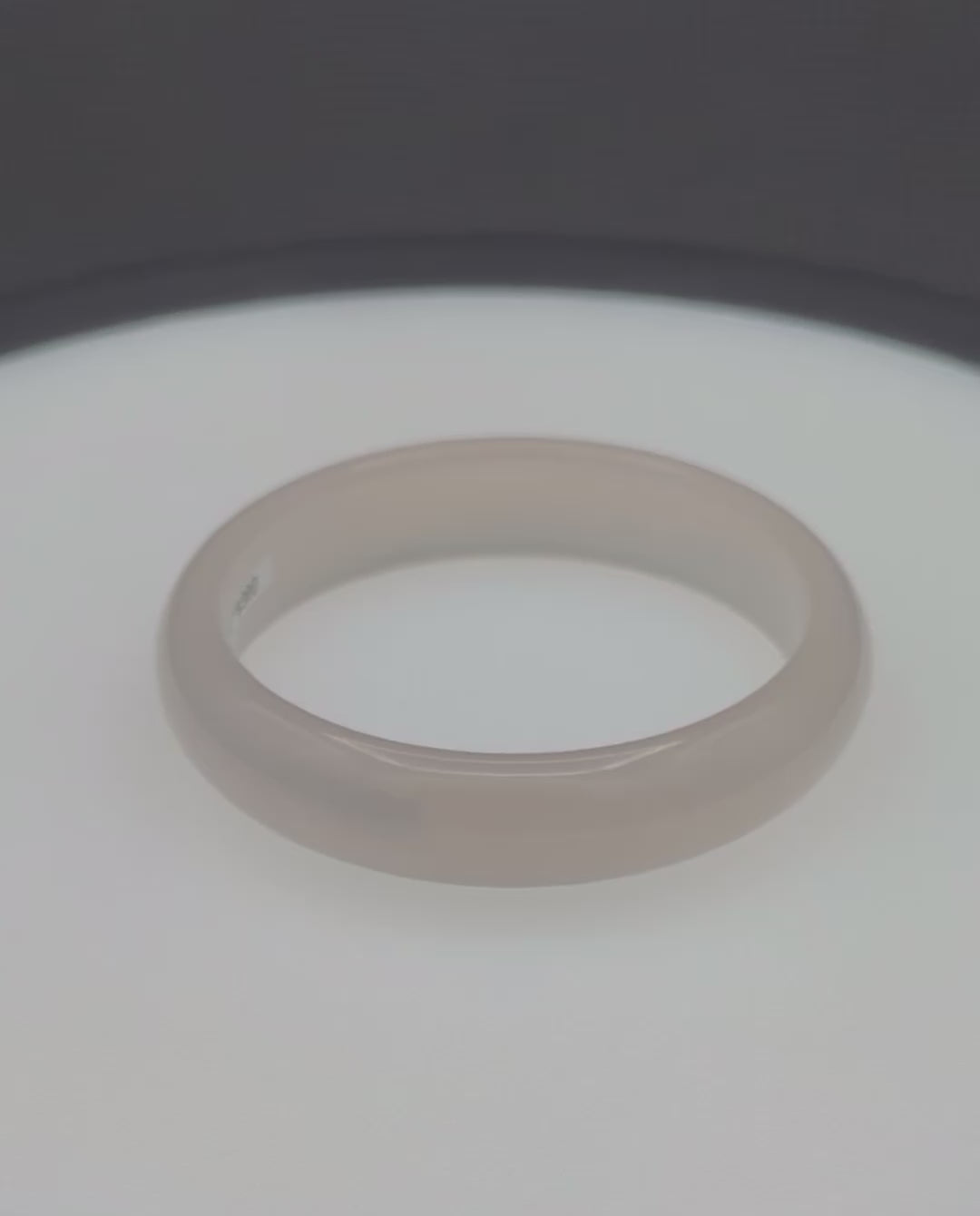 It is a beautiful, classic bangle bracelet. It is made from white jade agate, sourced from Yunnan, China, which is associated with purity and spiritual significance. The stone is translucent to opaque with milky banding or layers. The color of the stone is desirable, as it always complements the attire worn.
