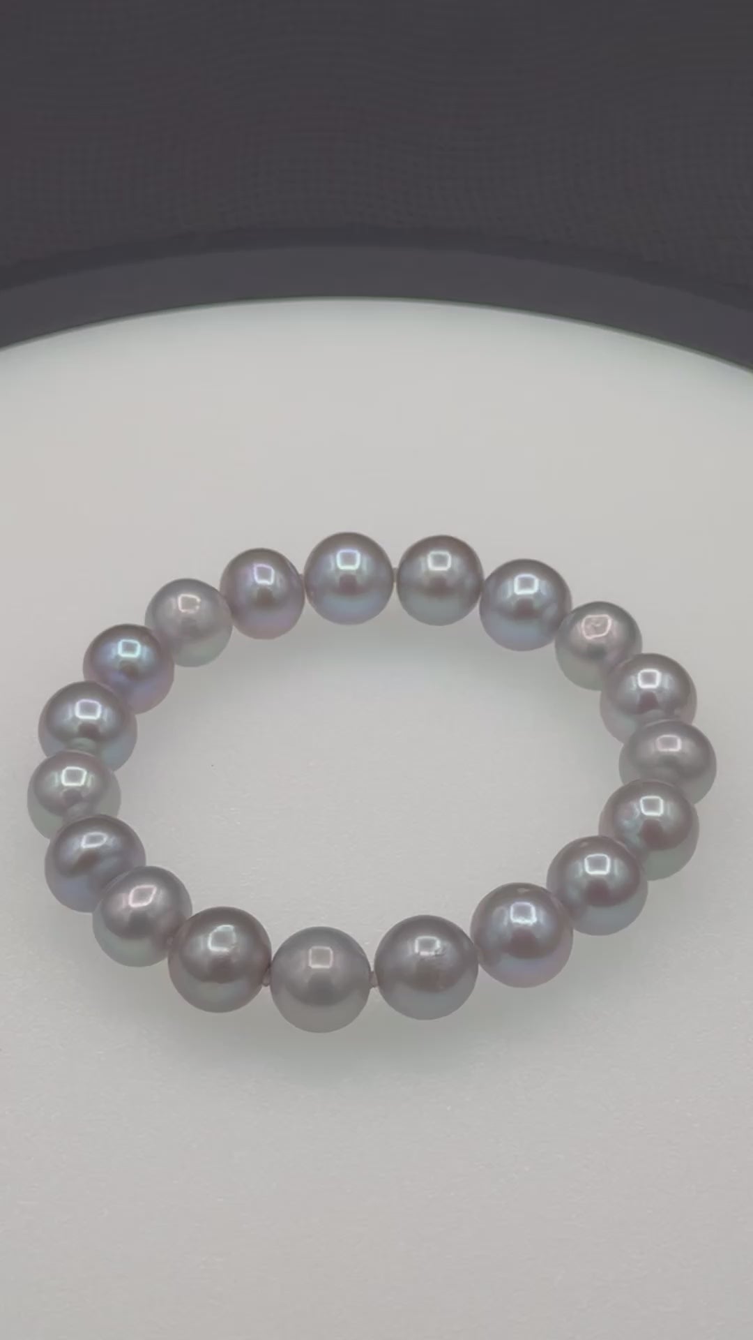 Add a touch of elegance to your everyday style with our A-grade, South Sea silver pearl bracelet. This splendid bracelet will captivate with its luminous grey hue. Featuring 11mm pearls, this ample-size piece boasts a 6.75-inch continuous band of pearls without a clasp, corded with a strong elastic cord for a comfortable and seamless look.