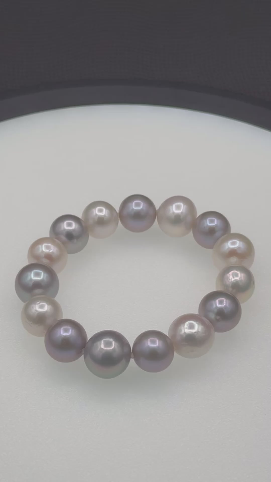 Add a touch of elegance to your everyday style with our AA-grade (view grading Guide) South Sea mixed silver pearl bracelet. This splendid bracelet will captivate with its luminous, variable grey hues. Featuring 12-13.5mm pearls, this generous piece boasts a 6.25-inch continuous band of pearls, secured without a clasp, and corded with a strong elastic cord for a comfortable and seamless look. Refresh the elastic cord periodically.