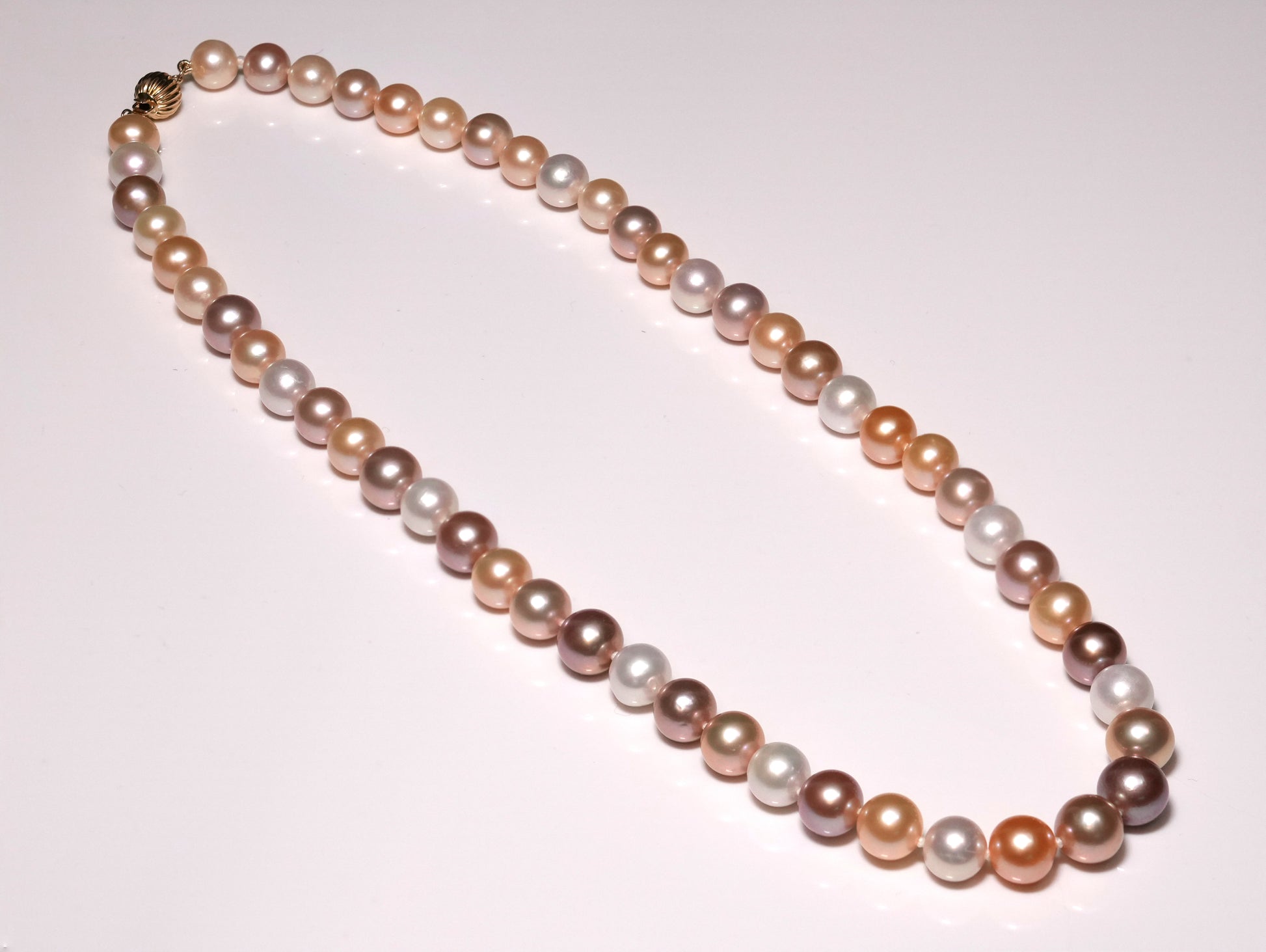 Add a touch of gracefulness to your everyday or evening style with our AAAAA-grade South Sea mixed pink-gold-white pearl necklace. This astounding piece is the perfect choice of jewelry, sure to make a lasting impact with its stunning warm tones transitioning into warm and cool hues. Featuring 8-10mm pearls, this 20-inch strand is elegantly secured with a 14K yellow-gold clasp, adding a sophisticated flair to any ensemble.