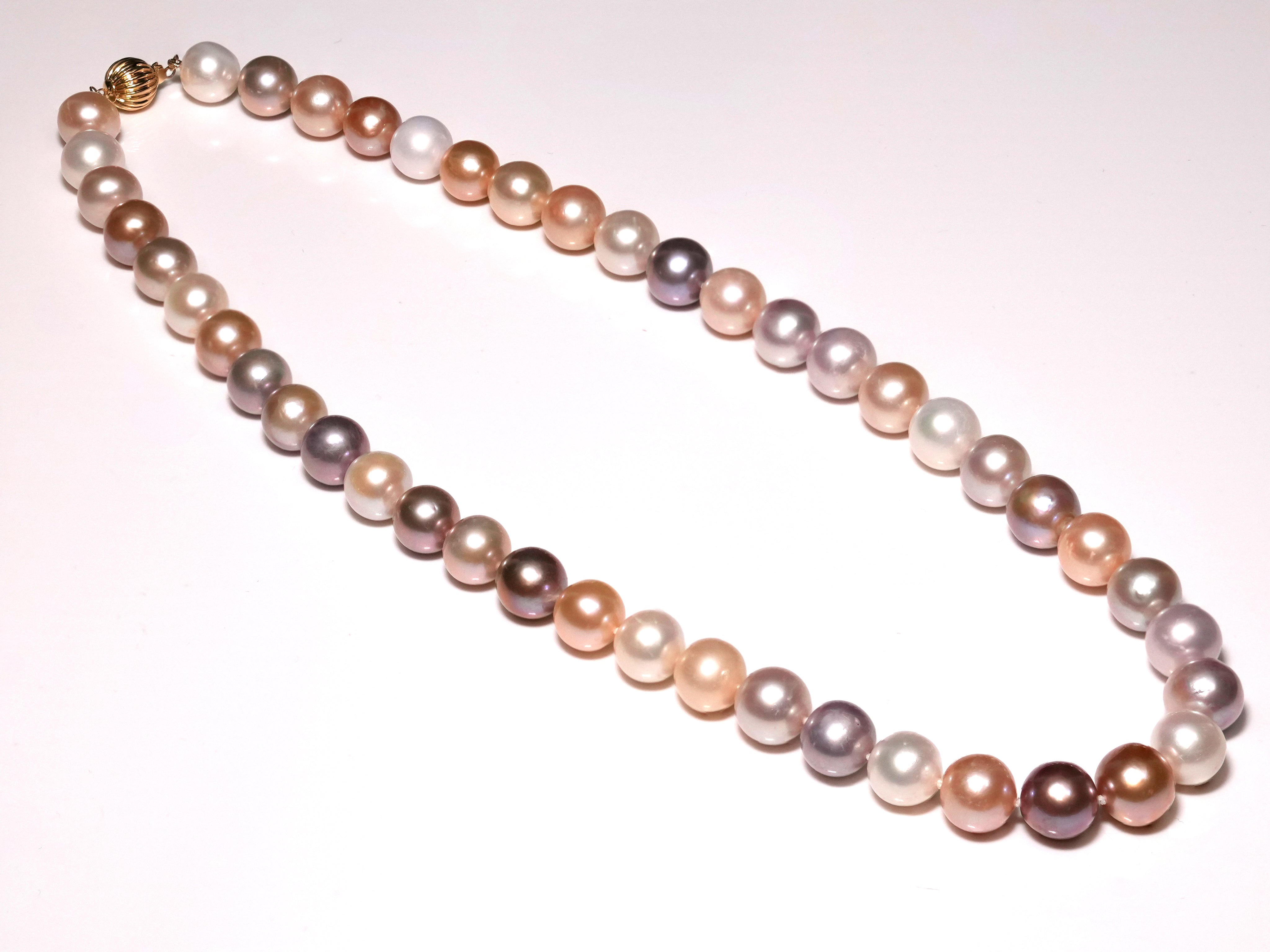 Uplift your everyday or evening style with our AAAAA-grade South Sea mixed pink-golden-white pearl necklace. This astounding piece is the perfect choice for any occasion, sure to make a lasting impression with its stunning, warm, and pleasing tones that transition from warm to cool hues. Featuring 10.5mm pearls, this 20-inch strand is elegantly secured with a 14K yellow-gold clasp, adding sophistication to any ensemble.