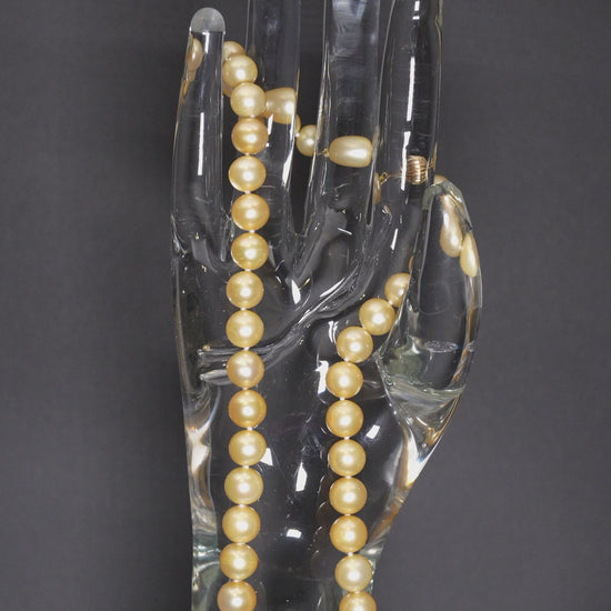 Crafted with saltwater South Sea cultured pearls sourced directly from Australia, this necklace features 100% authentic pearls with an 80% surface cleanliness rating. The thick layer of nacre provides excellent reflection. "It is lovely." With slight variations in color, tone, shape, and size, and fewer visible imperfections, the pearls exhibit a rich, reflective depth, beautifully capturing their soft, golden hue.