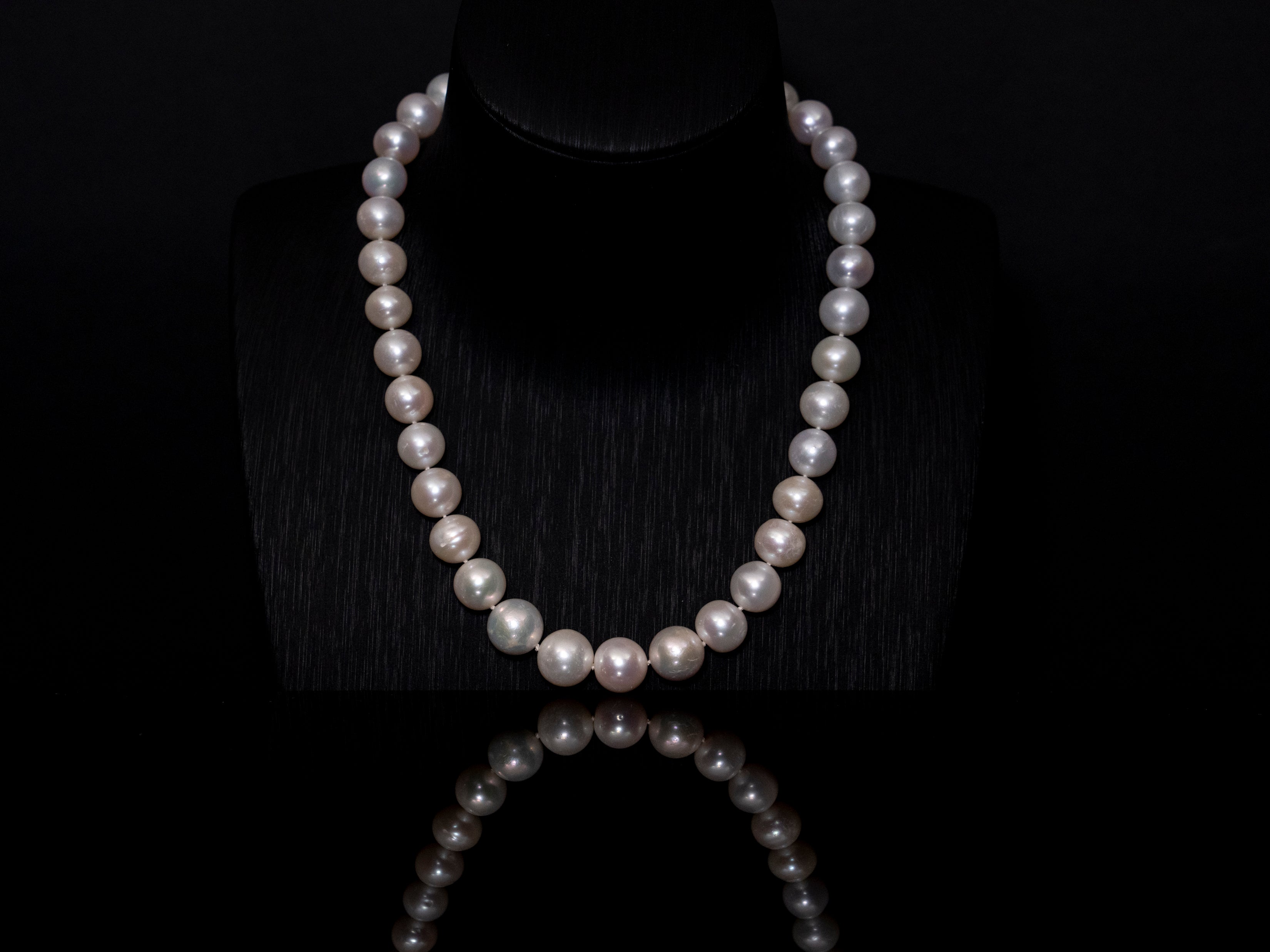 Our A-grade South Sea White Pearl is casual and all-around for anytime wear. Featuring 9.5-12.5mm pearls, this 16.25-inch strand is elegantly secured with a sterling silver clasp, revealing its white hue with a casual charm and character. FINAL SALE