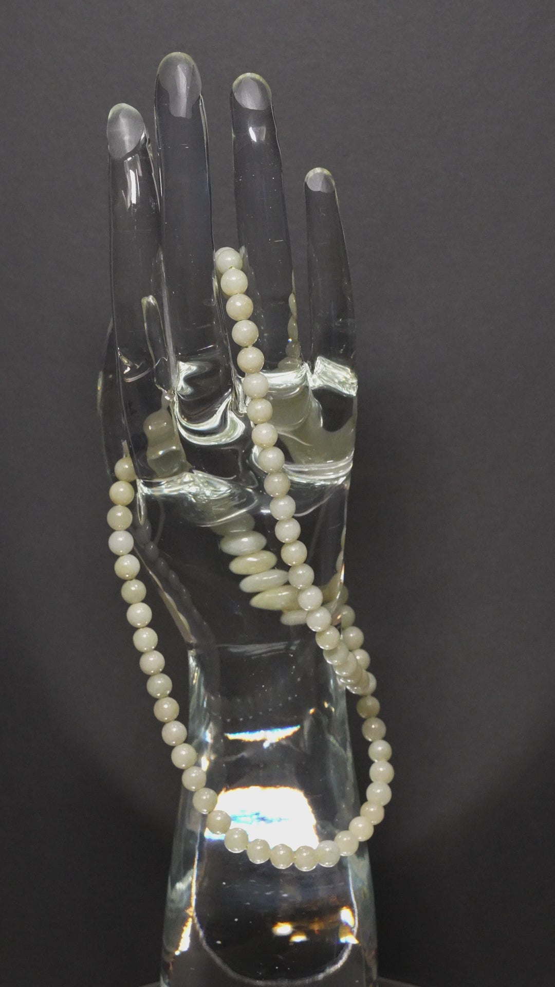 This elegant Light Green Jade Necklace offers timeless, natural beauty that complements any style. Featuring 7.5mm beads, this 27-inch continuous strand provides a seamless, sophisticated appearance, highlighting the gentle, soothing tones of light green jade. This continuous strand features a no-clasp design, making it easy to wear.