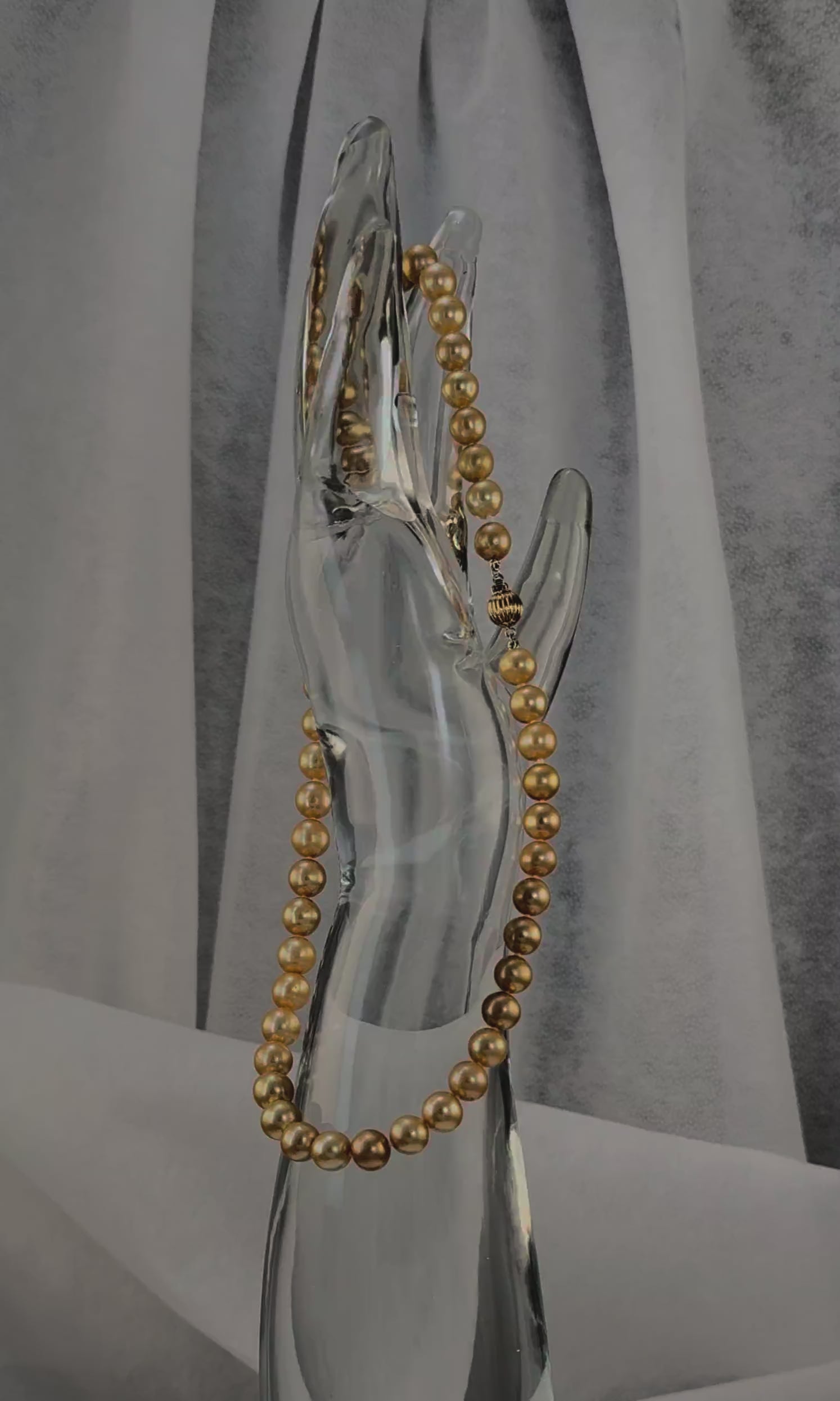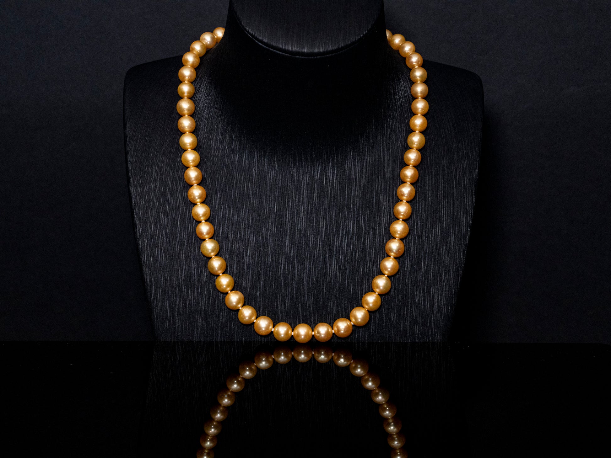 Add a notifiable gracefulness to your everyday or evening style with our AAAA Superb-Grade South Sea Deep Gold Pearl Necklace. This stunning piece is the perfect accessory for any occasion, making a refined statement with its radiant beauty. Featuring 9-10mm pearls, the 18-inch strand is secured with a 14K yellow-gold clasp that showcases a striking, natural deep gold hue.