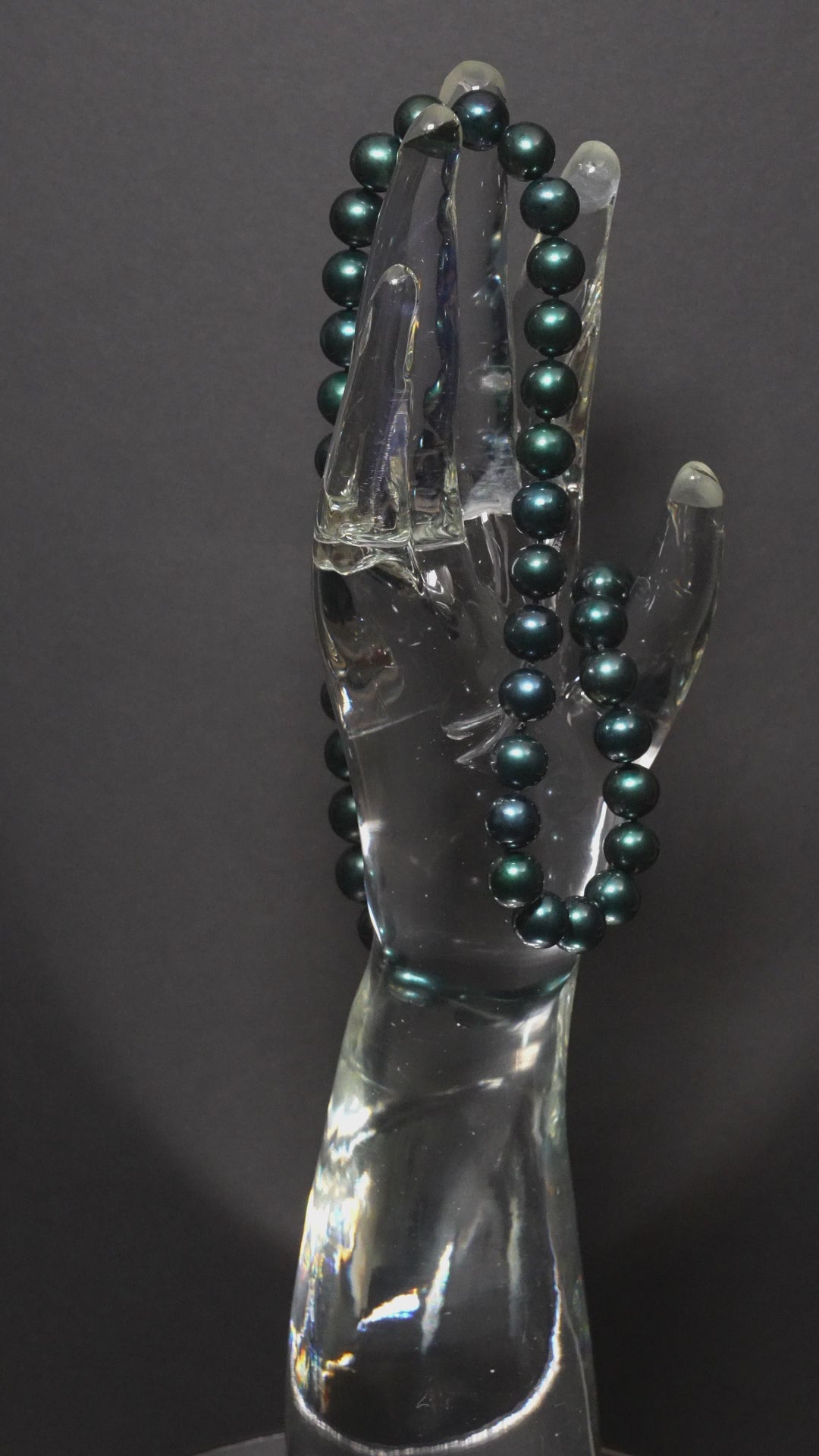 Add a touch of timeless beauty to your style with our AAAAA-grade Tahitian green pearl necklace. This exquisite piece is perfect for any occasion, featuring 11-12mm pearls in a continuous 23-inch strand. The green hue offers a unique, elegant look that enhances any ensemble. This continuous strand features a no-clasp design, making it easy to wear for any occasion.