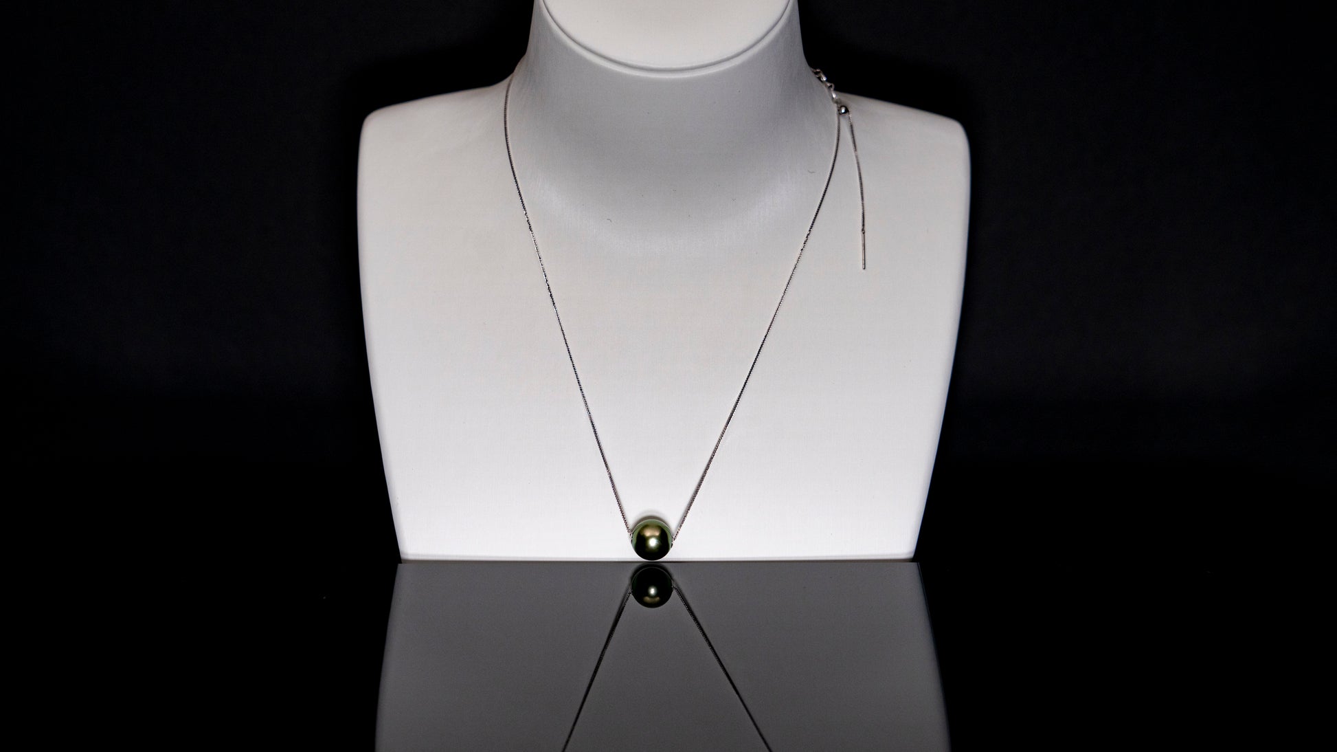 This exquisite necklace will elevate your wardrobe with our TOP pinnacle-grade, single-pearl Tahitian Pistachio necklace. Featuring an 11mm pearl, this stunning piece is renowned for its remarkable pure lime-sage hues and exceptional quality. The necklace includes an 18-inch, 18K white-gold delicate chain with a slider, allowing for adjustable length to suit your style.