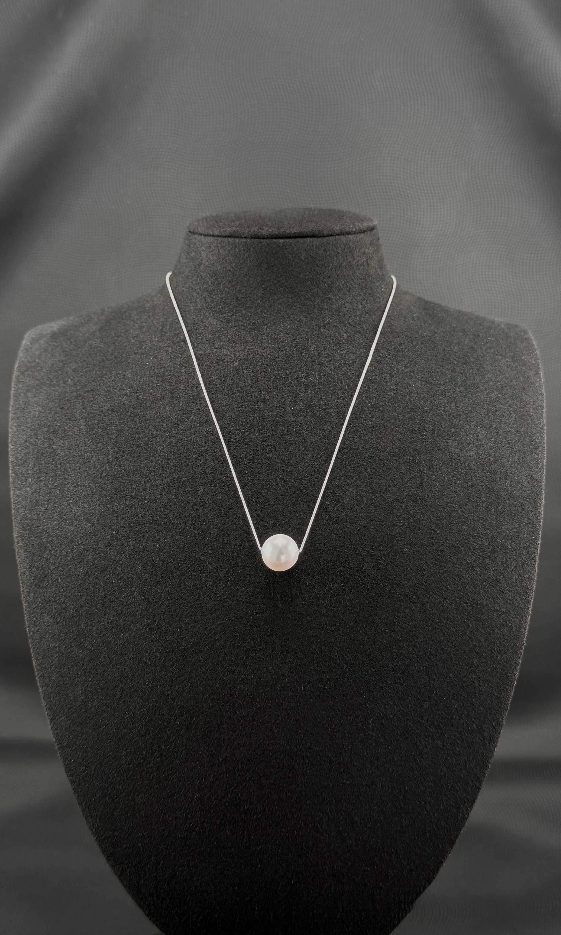 This exquisite necklace will elevate your wardrobe with our top-grade, single pearl, South Sea White necklace. Featuring an 11.5mm pearl, this stunning piece is renowned for its remarkable, pure, and imminent hues, as well as its exceptional quality. The necklace includes an 18-inch, 18K white-gold delicate chain with a slider, allowing for adjustable length to suit your style.